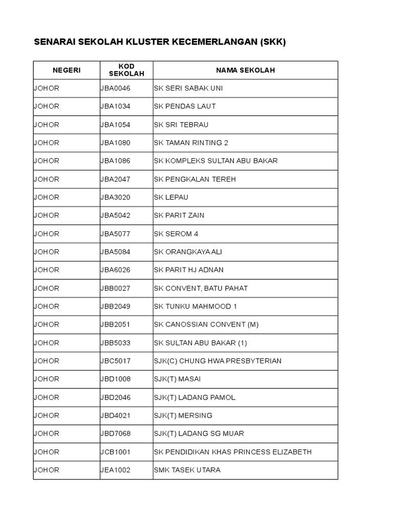 Sekolah kluster ialah satu jenama yang diberi kepada sekolah yang dikenal pasti cemerlang dalam klusternya daripada aspek pengurusan sekolah dan kemenjadian murid.senarai sekolah kluster kecemerlangan di malaysia terkini. Last updated january 20, 2020. Senarai sekolah kluster kecemerlangan (skk) negeri selangor bil nama sekolah fasa 1 2 3 4 5 6 7 8 9 10 11 12 13 14 15 16 17 18 19 20 sjk(t) simpang lima smap documents similar to senarai sekolah kluster kecemerlangan. For faster navigation, this iframe is preloading the wikiwand page for sekolah kluster kecemerlangan. Senarai nama guru bertugas :