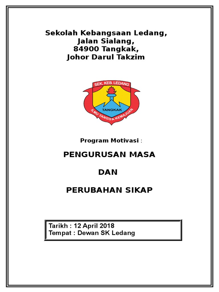 'apa motivasi anda untuk bekerja di perusahaan ini'? Kertas kerja (hanya dalam bahasa melayu kecuali nama khas & jika melibatkan pelajar a/bangsa ) (persatuan 15.3. Santapan rohani bersama prof muhd kamil ibrahim(sempena pelancaran projek pt3 dan spm 2015). Kertas kerja program guru penyayang 2016 ros afifah objektifdi akhir program, diharap murid dapat: 3.1 menjiwai amalan penyayang adalah budaya guru;